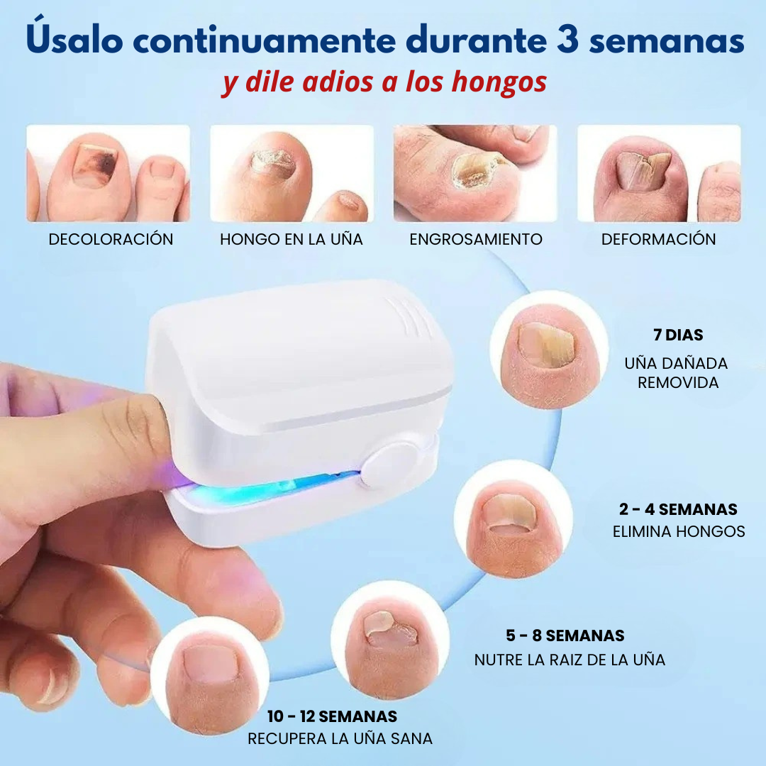 Es un limpiador láser portátil para uñas, diseñado para ayudar a mejorar el aspecto de uñas con hongos, decoloración o engrosamiento, de forma fácil y sin dolor.