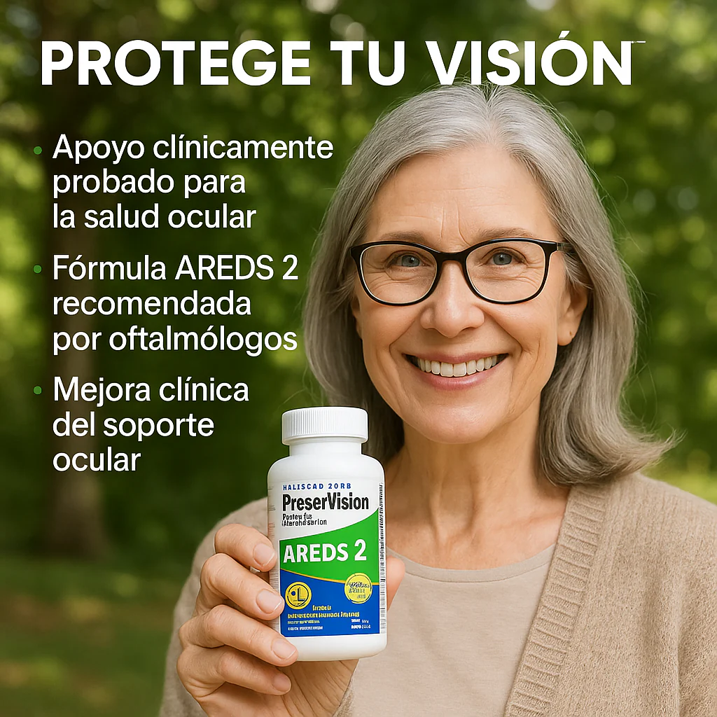 Es un suplemento ocular avanzado desarrollado por Bausch + Lomb, basado en los estudios AREDS2 del Instituto Nacional del Ojo de EE.UU. Ayuda a proteger y conservar la visión, especialmente en personas con degeneración macular o desgaste ocular por edad.